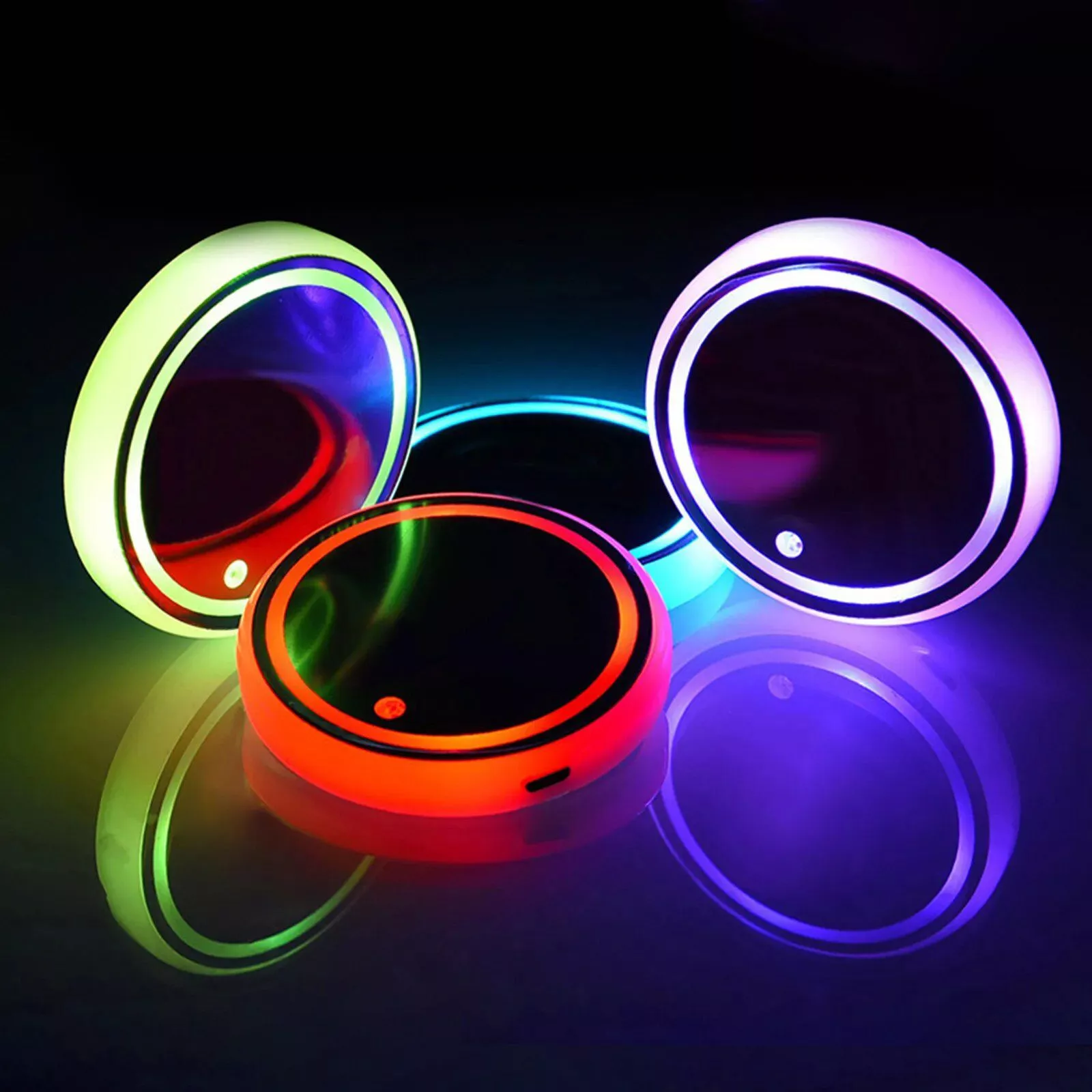 USB-Charged LED Car Coaster with Music Rhythm & 7-Color Atmosphere Lighting